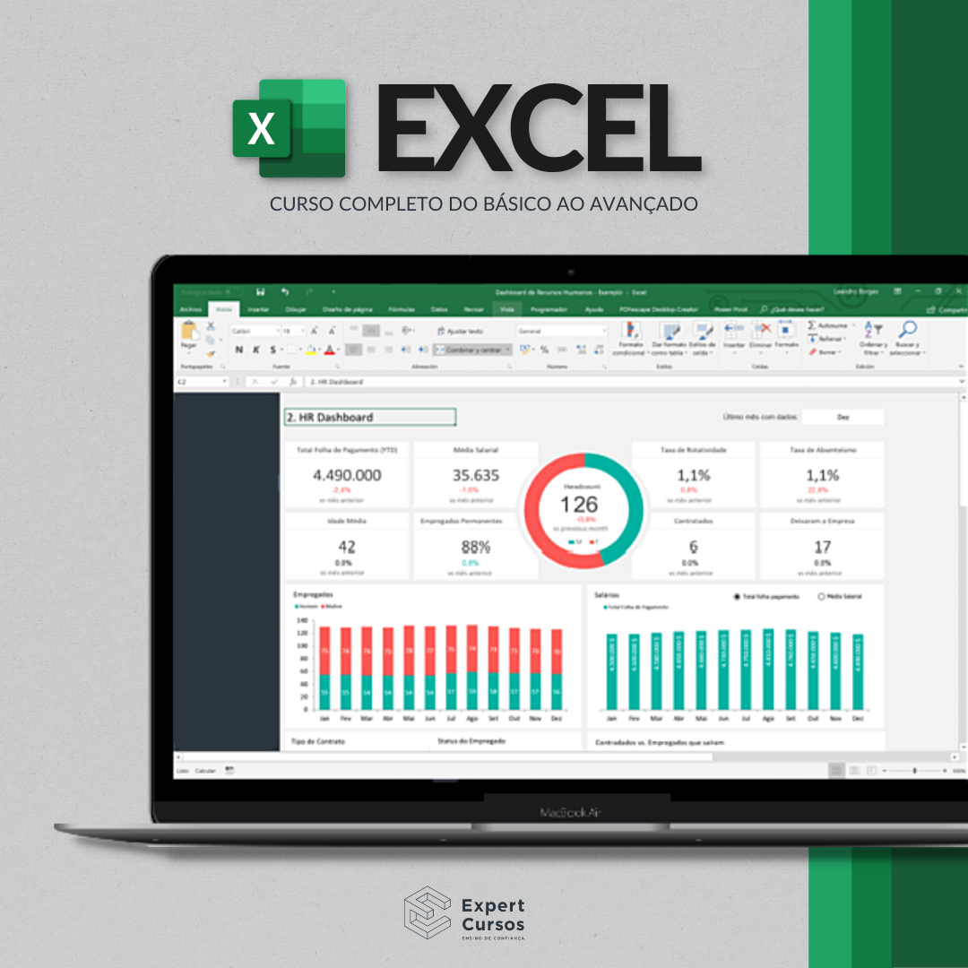 Em 10 módulos com 40 videoaulas passo a passo, você aprende formatações, funções básicas e avançadas, criação de gráficos, macros e dashboards — tudo na prática e sem complicação.